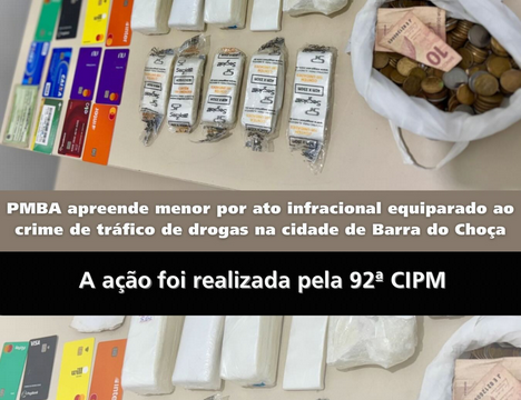 Na tarde deste sábado (31), Policiais Militares da 92ª CIPM apreenderam um menor pelo ato infracional equiparado ao crime de tráfico de entorpecentes, na cidade de...
