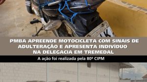 Polícia PMBA apreende motocicleta com sinais de adulteração e apresenta indivíduo na delegacia de Tremedal 3 semanas atrás