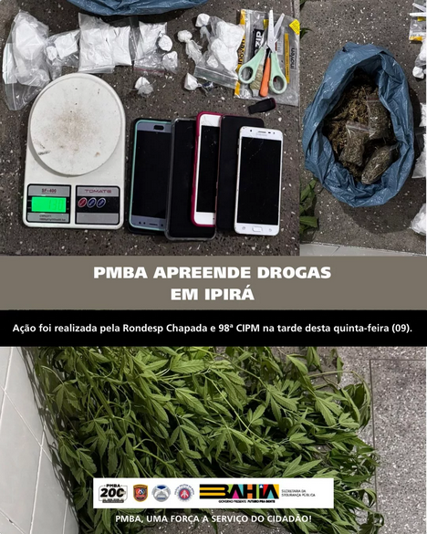 Nesse contexto, numa ação colaborativa entre a RONDESP CHAPADA e a 98ª CIPM/IPIRÁ, foi possível identificar uma localidade com diversas denúncias sobre tráfico de drogas. Diante disso, a guarnição, ao realizar patrulhamento tático na localidade de Novo Horizonte, visualizou um indivíduo em atitude suspeita. Ao tentar realizar a abordagem, o mesmo conseguiu evadir, deixando para trás uma sacola com todo o material ilícito listado.