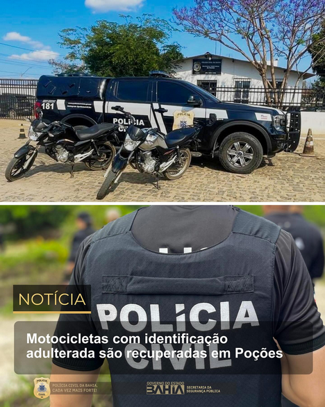 A Delegacia Territorial de Poções, no Sudoeste baiano, apreendeu duas motocicletas com sinais de identificação adulterados. A ação, realizada na terça-feira (14), teve o objetivo de retirar veículos irregulares das ruas e resultou na recuperação dos bens, ambos modelo Honda CG 160.