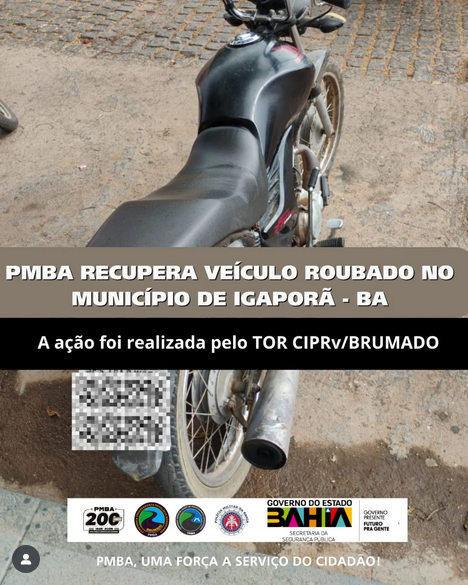 Na tarde de Terça – Feira (14/10), as 15h00, policiais Militares da Companhia Independente de Polícia Rodoviária (CIPRv/BRUMADO) Guarnição do TOR apreenderam um veiculo na BR – 030 Município de Igaporã – BA.