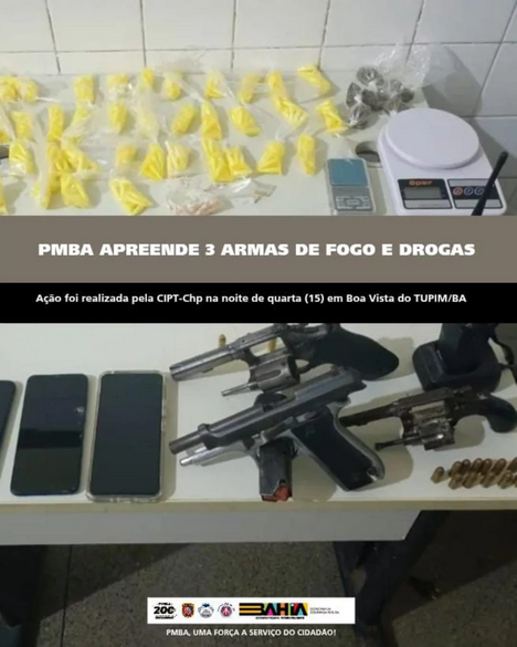 Nesta quarta-feira (15), durante patrulhamento na cidade de Boa Vista do Tupim, a guarnição da Operação Visão Noturna recebeu denúncia anônima informando sobre a prática de tráfico de drogas na Avenida Central.