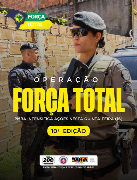 Nesta quinta-feira (16), a Polícia Militar da Bahia integra a 10ª edição da Operação Força Total, ação conjunta que mobiliza todas as Polícias Militares do país.