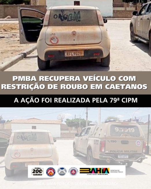 Nesta quarta-feira (15), policiais militares da 79ª CIPM, durante a Operação Harpia, recuperaram um veículo com restrição de roubo na cidade de Caetanos.