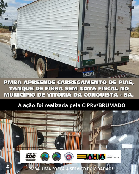 Na fiscalização ao compartimento de carga, os policiais notaram a quantidade de 2 pias, 48 tanques de fibra e 01 suporte para pia sem o documento legal de tributo Fiscal.