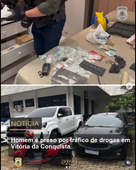 Um homem de 33 anos foi preso em flagrante, nesta sexta-feira (7), por tráfico de drogas e posse ilegal de arma de fogo e munições, durante ação da Polícia Civil da Bahia. O cumprimento do mandado de busca e apreensão foi realizado no bairro Felícia, em Vitória da Conquista, e resultou na apreensão de porções de cocaína prontas para comercialização, um tablete da droga prensada, balanças de precisão, milhares de embalagens utilizadas no preparo do entorpecente, além de um revólver calibre 38 e dinheiro proveniente da atividade ilícita.