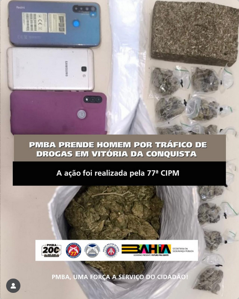 Por volta das 13h desta terça-feira (25), durante patrulhamento tático na Avenida Integração, na cidade de Vitória da Conquista, uma guarnição do PETO da 77ª CIPM recebeu informações de que um indivíduo estaria praticando o crime de tráfico de drogas nas proximidades.