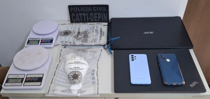 Durante a continuidade das investigações, os policiais identificaram que um dos notebooks furtados no dia 19 de dezembro de 2025 estava em posse de um homem já investigado por envolvimento com o tráfico de drogas. Após a localização do imóvel, no bairro Vasco Filho, o suspeito foi abordado e confirmou que havia adquirido o equipamento de origem ilícita. Ele também informou que mantinha entorpecentes e balanças de precisão em sua residência.