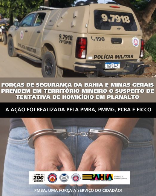 Nesta segunda feira (9), a 79ª CIPM participou de operação integrada juntamente com as forças de segurança pública, que culminou na prisão de um homem suspeito de tentativa de homicídio ocorrida no município de Planalto, no sudoeste baiano.