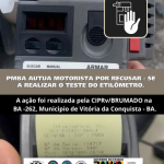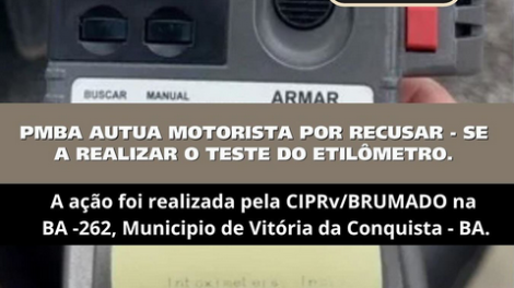 Durante a fiscalização, o condutor foi convidado a realizar o teste do etilômetro, mas recusou-se. Diante da recusa, foi autuado conforme o art. 165-A do CTB. O veículo foi liberado e entregue a outro motorista devidamente habilitado.