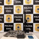 Na ação, foram apreendidas porções de cocaína e maconha, além de um aparelho celular. O indivíduo e todo o material foram apresentados no DISEP.
