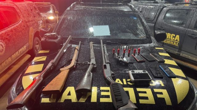 Cinco pessoas suspeitas foram detidas, e cinco armas de fogo e aparelhos celulares foram apreendidos