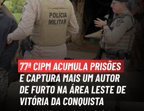 A manhã deste dia 03 foi marcada por mais uma ação assertiva da Polícia Militar em Vitória da Conquista. Uma equipe da 77ª CIPM prendeu um homem que...