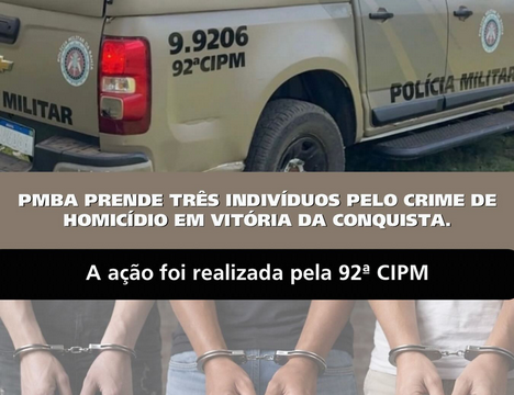 Na tarde deste domingo (15), policiais militares da 92ª CIPM realizaram a prisão em flagrante de três indivíduos suspeitos de envolvimento em um homicídio ocorrido...