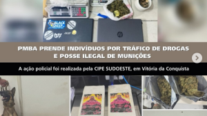 Destaque • Polícia PMBA realiza prisão por tráfico de drogas e posse ilegal de munições 1 semana atrás