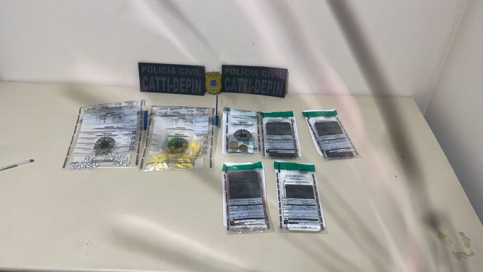 A Polícia Civil da Bahia apreendeu drogas, celulares e um veículo adulterado durante o cumprimento de mandados judiciais, na manhã desta sexta-feira (10), no distrito de Laje do Banco, zona rural do município de Aurelino Leal. A ação teve como objetivo cumprir mandado de prisão contra um homem de 20 anos, investigado pelos crimes de homicídio, tráfico de drogas, associação para o tráfico e adulteração de sinal identificador de veículo automotor.