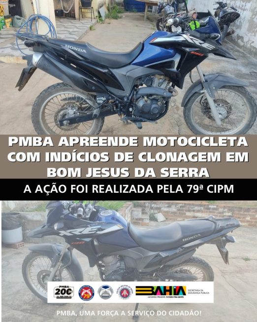 Na tarde desta quinta-feira (14), durante rondas e abordagens na cidade de Bom Jesus da Serra, a guarnição de serviço da 79ª CIPM avistou uma motocicleta Honda NXE 300. Ao realizar a consultas em bancos de dados, foi identificado que o veículo apresentou inconsistências nas informações.