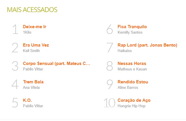 Além disso, a canção é atualmente a sexta música mais acessada no portal Letras.com.